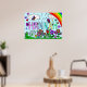 Une grande affiche colorée pour la chambre d'un enfant du nom de Hannah. Fleurs colorées, violet, rose, rouge, jaune, bleu et vert avec un joli arc-en-ciel, papillons, chenilles et coccinelles.