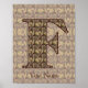 Monogram letter F filled with an elegant vintage floral design poster print.
