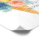 Floral Succulent Macaron Fête des mariées Party Poster présente le texte "Devinez combien de baisers pour la future Mrs" accentué avec d'élégantes fleurs d'aquarelle et macarons dans un cône de crème glacée en corail mou, turquoise, bleu et jaune sur un arrière - plan blanc. Personnalisez en modifiant le texte dans les zones de texte. Conçu pour vous par ©Evco Studio www.zazzle.com/store/evcostudio