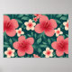 Poster Flore tropicale avec Hibiscus rouge et crème