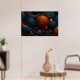 Une oeuvre digitale fascinante avec des sphères bleues et oranges brillantes nichées au milieu de structures tourbillonnantes, en forme de ruban. La composition évoque un univers fantastique ou un monde microscopique, riche en texture et en profondeur. Parfait pour les amateurs d'art abstrait, de thèmes cosmiques et de narration visuelle vibrante.