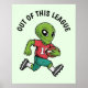 This poster features an illustration of an alien sprinting with a gridiron ball tucked under its arm, ready to take on any challenge. The sleek and futuristic alien design adds a fun, out-of-this-world twist to the classic sports theme. Boldly emblazoned across the top are the words "Out of this League" giving a playful nod to the alien's otherworldly athleticism. Perfect for sports fans, sci-fi enthusiasts, or anyone looking for unique wall art.