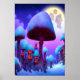 Poster Forêt de champignons, nuit, lune, neige | Art AI