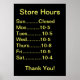 Grand Signe à afficher dans votre fenêtre. Permet aux gens de connaître vos heures. Une encre résistante à l'éclat, ne gaspillez pas votre argent sur les autres ! Totalement personnalisable. S'il vous plaît "signet" ce site, merci. Découvrez quelques-uns de nos autres grands designs !