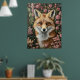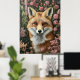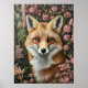 Un renard magnifiquement détaillé regarde la caméra, entouré de fleurs roses vibrantes, créant une scène boisée sereine et enchanteresse.