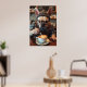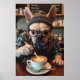 Commencez votre journée par un rire : cette affiche présente un Bulldog français sous forme humaine, revêtu d'une chemise à flanelle verte et blanche, de bretelles et de verres épais. Il est à mi-latte, derrière un bar à café branché, montrant un accent de barista sérieux. Son expression dit qu’il a déjà eu trois clichés de "Bark Roast". Des noms de boissons de tableau noir ridicule complètent la scène. Un choix parfait pour les cuisines, les cafés ou tous ceux qui aiment les chiens, le café, et les pièces murales excentriques.
