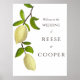 Create a custom poster to welcome guests to your wedding. This poster is ready to be personalized with the name of the bride and the groom and feature an illustration of lemons on a branch.