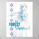 Congelé 2 | Ce graphique en typographie aquarelle dit "La forêt est éveillée", avec les icônes élémentaires pour l'eau, le vent, la terre et le feu.