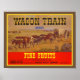 Affiche de grande qualité Wagon Train Fruits fins de marque et présentant de vieux cowboys de l'Ouest, du bétail et des wagons couverts.