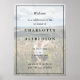 Moderne affiche de funérailles simple pour accueillir les amis et la famille dans la célébration de la vie de votre proche dans un style de design chic élégant minimaliste moderne. Le modèle peut être facilement personnalisé avec vos propres photos et texte pour créer un design spécial pour les funérailles, la mémoration ou la célébration de la vie de votre proche. L'image affichée est à des fins d'illustration uniquement et doit être remplacée par votre propre photo. L'image de remplacement est celle d'une jeune femme aux cheveux blonds portant un t-shirt blanc, un jean noir et des lunettes de soleil. Elle est assise au sommet d'une colline avec un magnifique paysage de fleurs sauvages en arrière-plan (Mam Tor Hill, Hope Valley, Derbyshire, Angleterre). #funérailles #mémoration #affiche #élégant