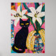 Poster Funny Black Cat and Flower Vase