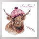 Cette affiche mignonne présente une belle illustration d'une vache Highland au gingembre drôle et poilu portant un casquette écossais. "Scotland" est en texte de script au-dessus de l'art animal. Parfait pour toute personne d'ascendance écossaise ou un amour de l'Ecosse.