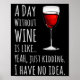 Poster Funny Wine S_ A Day Without Wine Is Like Just Kidd