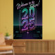 Admirez le look visionnaire cosmique avec cette affiche sur le thème futuriste, qui présente un texte brillant "2025" et un décor stylé et serein. C'est un mélange saisissant de teintes néon et d'art de pointe.