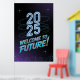 Admirez le look visionnaire cosmique avec cette affiche sur le thème futuriste, qui présente un texte brillant "2025" et un décor stylé et serein. C'est un mélange saisissant de teintes néon et d'art de pointe.