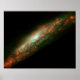 Ces clichés du télescope spatial Hubble de la NASA révèlent des activités spectaculaires au coeur de la galaxie NGC 3079, où une bulle de gaz chaud est en train d'émerger d'un chaudron de matière brillante. L'image à gauche montre la bulle au centre du disque de la galaxie. La structure mesure plus de 3000 années-lumière et s'élève à 3500 années-lumière au-dessus du disque de la galaxie. La plus petite photo à droite est une vue rapprochée de la bulle. Les astronomes soupçonnent que la bulle est soufflée par des "vents" (flux de particules à haute vitesse) libérés lors d'une explosion de formation d'étoiles. Les filaments gazeux au sommet de la bulle tourbillonnent dans un tourbillon et sont expulsés dans l'espace. En fin de compte, ce gaz tombera sous la pluie sur le disque de la galaxie où il pourrait entrer en collision avec des nuages de gaz, les compresser et former une nouvelle génération d'étoiles. Les deux points blancs juste au-dessus de la bulle sont probablement des étoiles dans la galaxie.