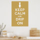 Une version de la célèbre affiche de l'effort de la Seconde Guerre mondiale, "Keep calm and carry", dédiée aux vapeurs qui aiment dériver. Le slogan est Keep Calm and Drip On, il comporte une pointe goutte sur le dessus et la couleur est dorée. Vape-toi, goutte-à-goutte et sois inspiré, Amateurs de piqûres !