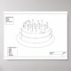 Dessin architectural d'un gâteau d'anniversaire dans le style des plans de construction ou des estampes bleues. Ce dessin a été créé dans AutoCAD. Bon pour l'anniversaire d'un architecte ou d'un ingénieur.