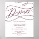 Cette affiche de gâteaux de mariage romantiques avec texte en bourgogne est parfaite pour un mariage simple. Le design moderne classique présente des volutes fantaisistes et des fioritures fantaisistes avec une typographie élégante et manuscrite magnifique.