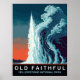 Parc national de Yellowstone, États-Unis. Eruption de l'Eau de l'Ancien geyser Fidèle. Affiche de voyage Vintage