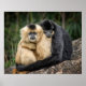 Deux gibbons brun et un gibbon noir serré