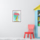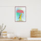 girafe mignonne avec un grand parapluie rose étoilé sur un arrière - plan pastel bleu