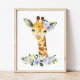 Poster Girafe, Safari, Fleurs Violettes, Mixte