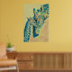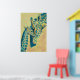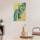 Une mère affectueuse et une petite girafe dans les tons turquoises, aqua et bronzés