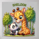 Poster Giraffe et Panda Nom monogrammé |