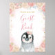 Poster du livre d'invité du Baby shower de Flamme de neige de Girl Penguin Winter
