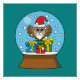 Illustration d'un globe de neige avec hibou santa claus portant un capot rouge et une longue barbe blanche avec ses trois cadeaux colorés pour Noël. Ce dessin animé kawaii wateglobe design est une idée cadeau pour les amateurs de vacances hivernales, les amateurs de snowdome et les amateurs de xmas.