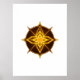 This artwork features a stylized compass rose design rendered in a glowing golden color. The central element is a symmetrical, star-like shape with pointed ends, surrounded by a dark brown or black circular background. The golden lines appear to emit light, creating a striking contrast against the dark base. The design evokes themes of navigation, direction, and exploration, presented in a modern and abstract aesthetic.