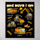 Poster God Says I Am Christian Bible Verses Boys Construc