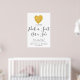 Un beau coeur doré et une calligraphie branchée créent un panneau mariage moderne et minimaliste. Choisissez un siège, Pas un côté est écrit dans une police manuscrite moderne et clairsemée. Vous êtes aimé à la fois par le marié et la mariée est dans une simple police italique. Les noms du couple mariage et la date du mariage sont dans une police serif classique.