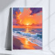 Poster Golden Hour Orange Sunset Beach Peinture Océan