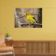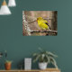Cette affiche présente une jolie petite finche dorée perchée sur une branche. C'est un oiseau merveilleux avec bec orange, ailes noires et plumes jaunes pures. Sa chanson ressemble au twitter original !