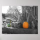 Classic New England stand d'automne citrouilles, cornstalks et gourdes à vendre en noir et blanc avec impression partielle d'affiche couleur. Photographie de Susan. Pour plus d'affiches et d'estampes florales, animales et naturelles, visitez ma galerie d'affiches SmilinEyes_Posters. Cette image est disponible sur de nombreuses cartes et produits dans mon magasin principal Smilin' Eyes Treasures.