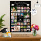 Créez facilement un poster de mémoire photo imprimé dans votre choix de couleurs à afficher lors d'une fête de remise de diplômes ou comme souvenir en utilisant ce modèle de collage photo facile à télécharger avec 35 photos de votre diplômé tout au long des années. Le design comprend une typographie manuscrite moderne pour GRATULATIONS DIPLÔMÉES et est personnalisé avec le nom de votre diplômé, l'année de classe et l'école ou tout autre texte personnalisé. La couleur noire de l'arrière - plan peut être changée en couleur de thème d'école ou de fête en cliquant sur MODIFIER. OPTIONS DE POSTER : L'échantillon est présenté dans une taille de 24x36" ; d'autres tailles d'impression, TÉLÉCHARGEMENT INSTANTANÉ ou transfert de conception vers d'autres options de produit sont disponibles sur la page de commande. ASSISTANCE : Pour obtenir de l'aide sur la modification ou la personnalisation de la conception, le changement de couleur, le redimensionnement, le transfert de la conception vers un autre produit ou si vous souhaitez coordonner des éléments, contactez le concepteur AVANT LA COMMANDE via l'onglet MESSAGE Conversation Zazzle ci-dessous ou envoyez un courriel à makeitaboutyoustore@gmail.com.