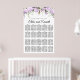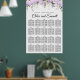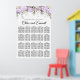 De beaux roses violets et une verdure verdoyante créent des bordures luxuriantes au sommet et au bas de ce tableau de sièges fleuris. Les noms des couples mariages sont écrits dans une police de script classique. Cet élégant tableau de sièges fait partie de la collection Violette qui contient des affiches, des programmes, des menus, des cartes de place et un décor de table qui vous permettent de personnaliser facilement et à un prix abordable votre cérémonie de mariage et réception.