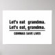Mangeons grand-mère. Mangeons, grand-mère. Les virgules sauvent des vies.