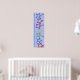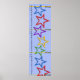 Les étoiles colorées mesurent la croissance de l'enfant par rapport à un arrière - plan bleu clair. Lignes jaunes à 2 pieds (mesurer du sol au montage correctement), 3, 4 et 5 pieds. Pouces marquées entre les lignes comme 1-12 avec 12 (sur la ligne jaune).