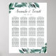 Le tableau de sièges mariage est conforme à notre collection Foliage Abondant, qui présente une végétation botanique luxuriante et des feuilles d'eucalyptus encadrant vos sièges d'invités.