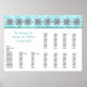 Belle affiche mariage sur le tableau de sièges à l'allure inspirée du Sud-Ouest. Un motif damassé turquoise clair, au sommet a de belles tonalités argentées et des décorations turquoise. Tout le texte est prêt à être personnalisé pour votre mariage. Ce tableau particulier permet 11 tables de 10 personnes, n'hésitez pas à me contacter pour faire un tableau pour accueillir le nombre d'invités et de tables à votre réception de mariage.