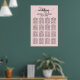Ce poster de calligraphie rose vif mariage est parfait pour un mariage élégant. Le design est composé d'une police cursive romantique et douce sur un arrière - plan rose ballet clair, charmant et délicat. Ce poster mariage offre suffisamment de place pour accueillir jusqu'à 16 tables (160 convives). En plus du placement de chaque invité, personnalisez ce panneau avec les noms de la mariée et du marié et la date du mariage.