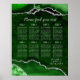 Welcome guests in style with this green and silver agate marble wedding seating chart, designed to make a striking statement at your reception. Rich jewel-toned greens, organic stone-inspired patterns, and luminous silver accents create a refined and dramatic display ideal for fall or winter weddings. The deep emerald palette paired with metallic silver detailing complements elegant, modern, and glamorous celebrations while enhancing your décor. This seating chart is formatted for 8 tables and can be fully customized to accommodate additional tables, guest counts, and layout preferences, ensuring a seamless fit for your wedding day.