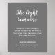 Cette élégante plaque mémorielle blanche sur gris, avec sa touchante citation "La lumière reste" est une belle façon de se souvenir et d'honorer l'être cher lors de la célébration de la réunion de vie. Personnalisez avec votre texte en bas.