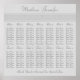 Un tableau des sièges de réception de mariage est une excellente façon de diriger vos invités vers leurs tables au lieu d'utiliser des cartes de visite. Vous pouvez également garder votre carte de sièges comme un moment de votre mariage et des gens qui ont célébré avec vous. Ce tableau de sièges mariage est fourni en plusieurs tailles différentes avec un cadre en option. Nous offrons également une version rectangulaire de ce tableau de sièges de réception de mariage qui s'adapte à de nombreuses tailles de cadre standard. Doté d'un motif de noeud céleste irlandais gris sur un arrière - plan gris clair, ce tableau de sièges événementiel coordonne avec les autres produits fins de notre collection de Mariage de noeud celtique-gris.