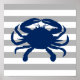 Une silhouette de crabe bleu marine contre un motif rayé gris clair et blanc. La motif rayée peut être carrelée à une taille différente. Vous pouvez également customiser la couleur arrière - plan gris clair. Créez une affiche personnalisée. Essayez le code de couleur 00255E si vous souhaitez faire correspondre la couleur de silhouette lorsque vous ajoutez votre propre message texte. Des affiches nautiques.