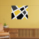 Impression d'affiche de peinture acrylique géométrique originale en jaune, gris, noir et blanc.
