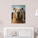 Un gros plan comique très détaillé d'un capybara aux yeux larges et expressifs, créant une expression hilarante et stupéfiante.